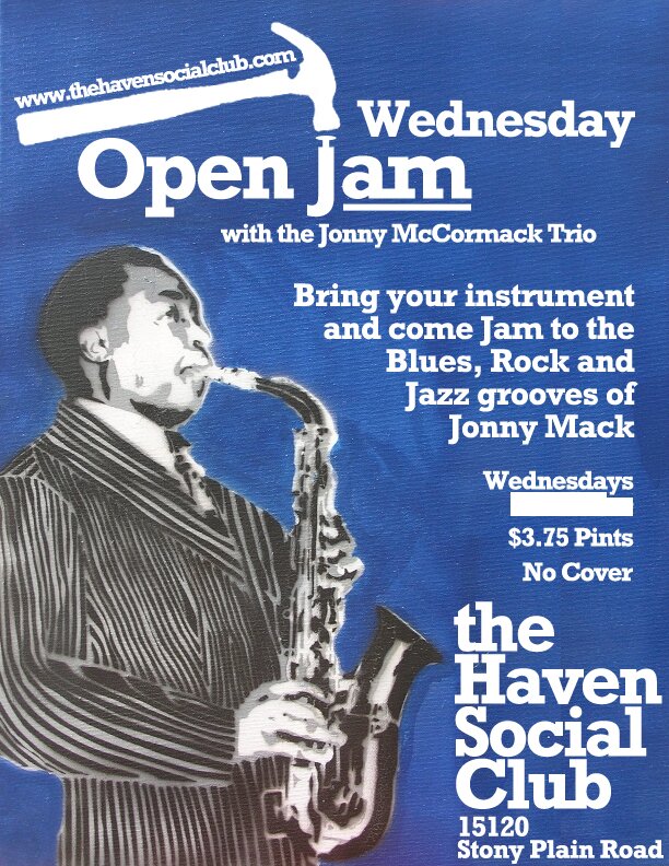 Come down to The Haven Social Club every Wendesday with your instrument or just your ears to check out the most free wheelin open jam in the city. This is a jam where genre has no limitations, where funk can fuse with jazz and rock can break down to gritty blues. You never know who will show up at this open stage, so be prepared to see improvised playing by the city’s finest. We have guitar/bass amps, a keyboard rig and a drumkit, so bring your sticks, guitars, trumpets, realbooks or charts if you desire, and sit in. Hosted by our Sax Man, Jonny Mac, this is a night not to be missed! $3.75 Pints